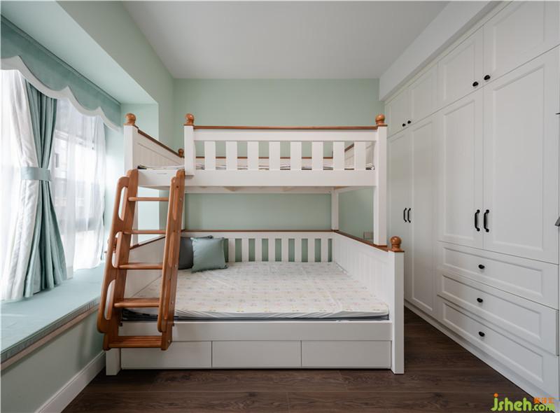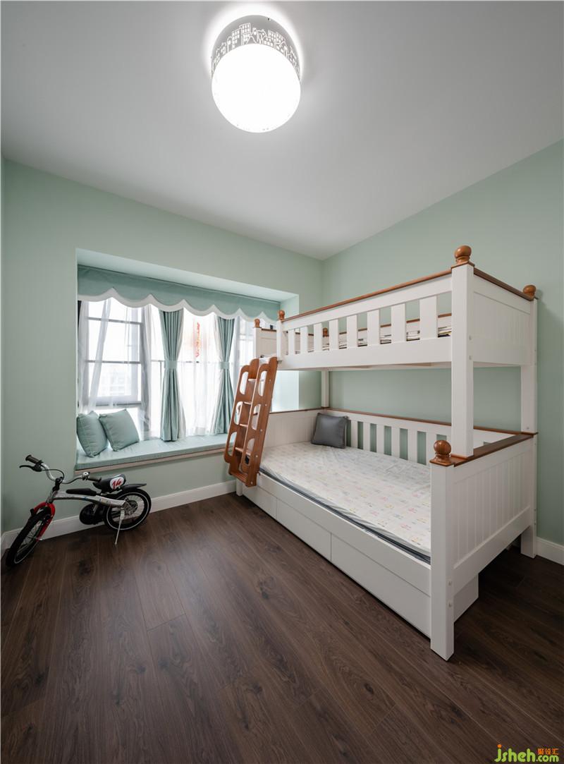 考慮到小朋友的成長需求,主色調(diào)再用于兒童房就不是很合適,所以兒童房的色調(diào)換成淡綠,小清新。室內(nèi)設(shè)計師
