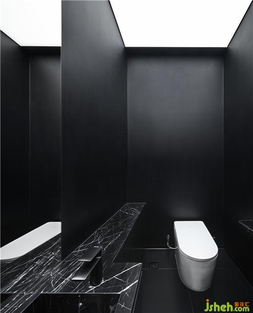 公共衛(wèi)浴的區(qū)域,利用黑白兩色視覺上將空間一分為二,增大視覺寬度。SPA設(shè)計定制LOGO全身鏡方便顧客自拍的同時實現(xiàn)品牌傳播。所有潔具均采用德國高端品牌,在每個細(xì)節(jié)給顧客提供最好的體驗。