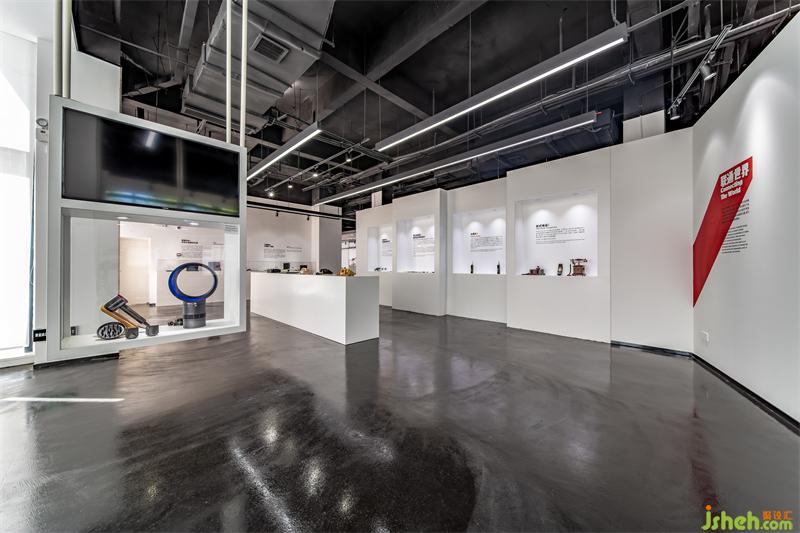 整個(gè)展廳墻面借助白色墻面和紅色鏡面延展動(dòng)線視野,樸素的材料突出陳列,用鋼結(jié)構(gòu)和玻璃做墻面,增強(qiáng)室內(nèi)空間感和采光面,簡(jiǎn)潔明確。