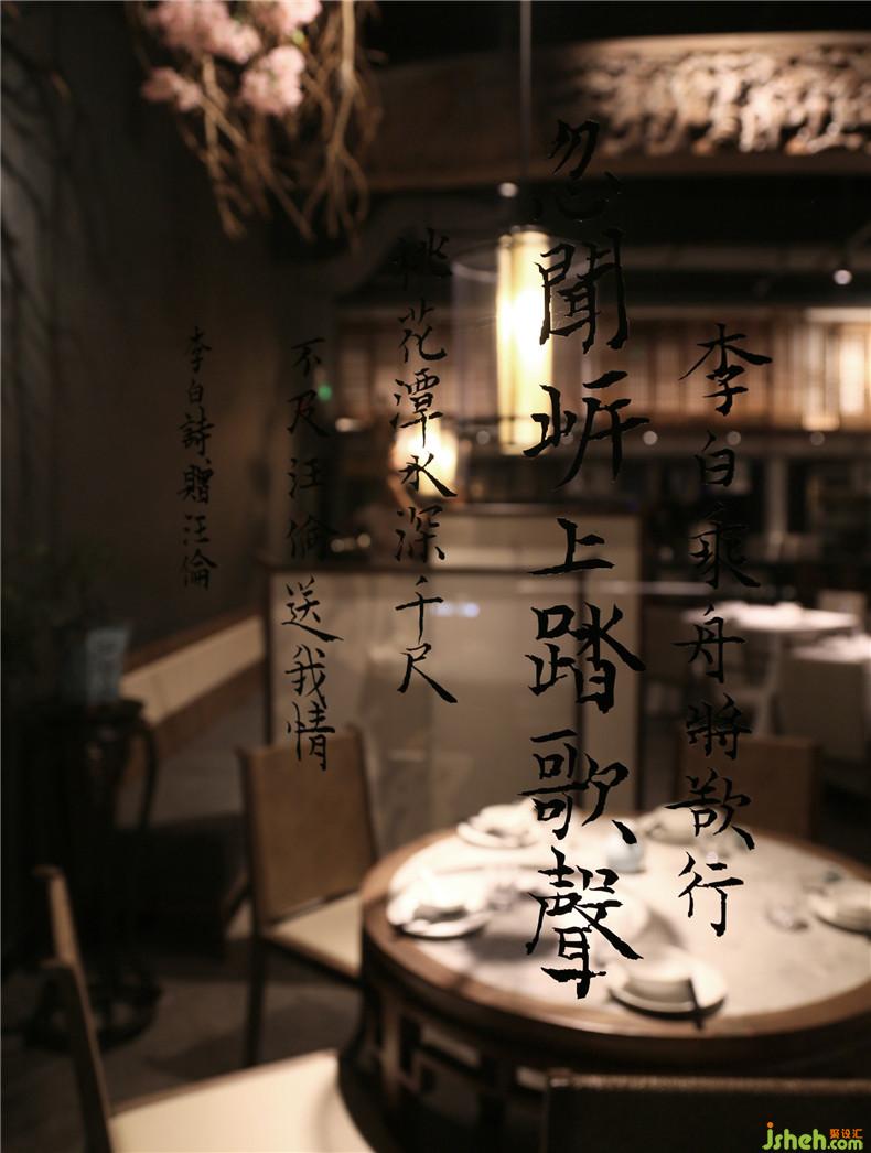 皖廚桃花潭是皖廚品牌下的文化主題餐廳,延續(xù)了皖廚徽派建筑古樸雅致的風(fēng)格,又將李白《贈(zèng)汪倫》中“桃花潭水深千尺,不及汪倫送我情”的詩意融入其中,在空間設(shè)計(jì)上于情感層面將桃花潭的故事進(jìn)行拆解重現(xiàn)。