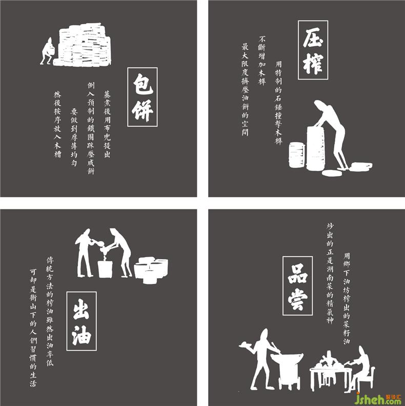 而為凸顯好油炒好菜,菜籽油的古法手工制作流程也被設(shè)計(jì)師用巖畫(huà)的手法加以呈現(xiàn),餐廳設(shè)計(jì)并通過(guò)投影形式映射在空間夯土墻上。夯土,這是油菜種植的土壤,是砌墻的土,亦是隱匿地道湖南味的沃土。