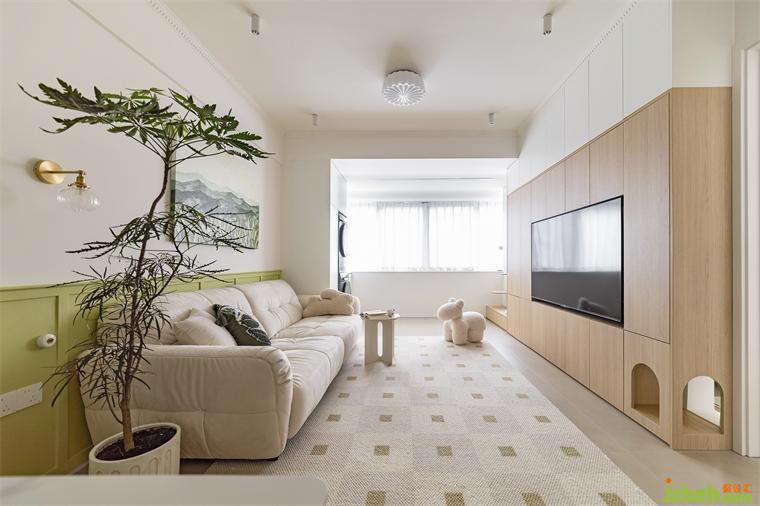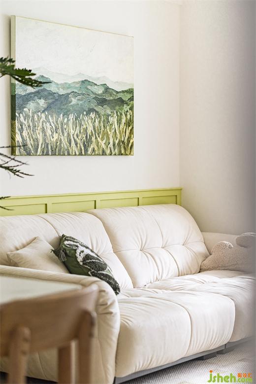 米色的沙發(fā)很適合客廳,它既柔和又雅致。綠色護墻板是一個很有趣的設計元素,裝修公司它為空間引入了清新的氣息。掛在墻上的風景畫起到了點睛之筆的作用,這是我們親自為業(yè)主畫的一副裝飾畫,它可以成為整個客廳的焦點。