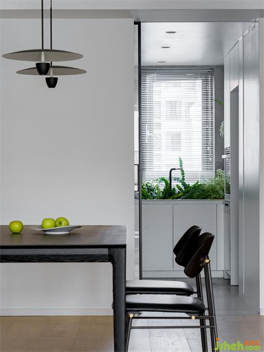 黑色餐桌與原木色地板,海境界家裝設(shè)計既不會讓空間產(chǎn)生壓抑之感,又不會讓配色過于單調(diào)