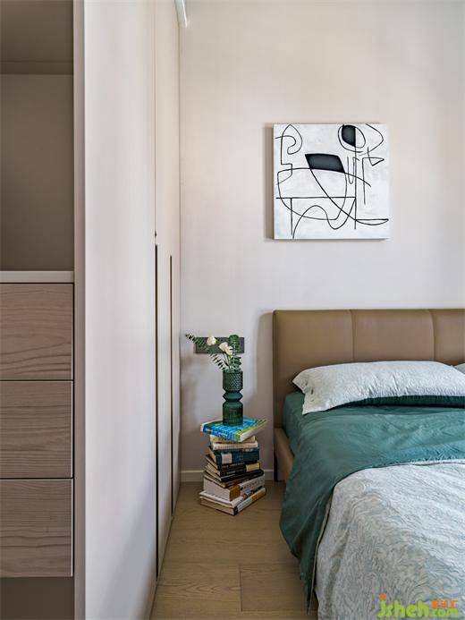 進門處增加衣柜側邊開放格,海境界家裝設計既滿足儲物也能讓人進入房間時不覺擁擠壓抑