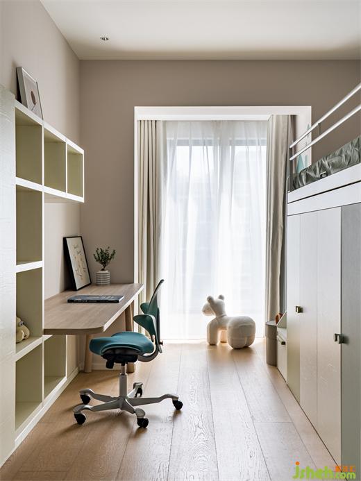 長輩房整體配色以淺咖色為主,溫馨又治愈