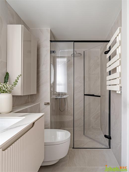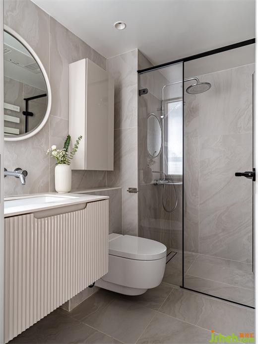 淋浴區(qū)采用下沉式設計,取消擋水石,整體感更干凈舒適
