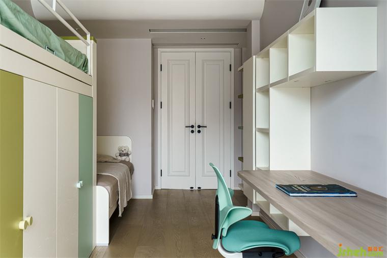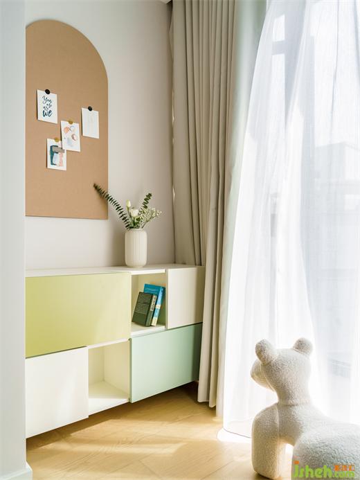 用低飽和度的咖色為主基調(diào),海境界家裝設(shè)計(jì)搭配黃色和藍(lán)綠色,讓兩個(gè)小公主在安靜平和的環(huán)境下學(xué)習(xí)、成長