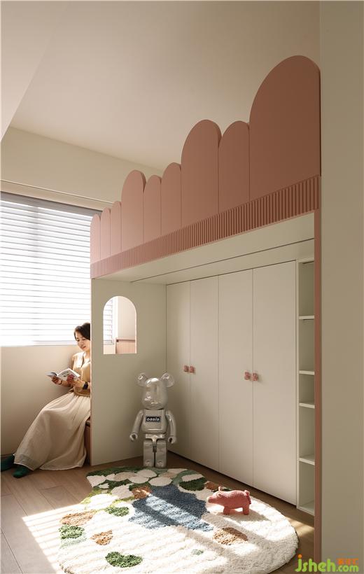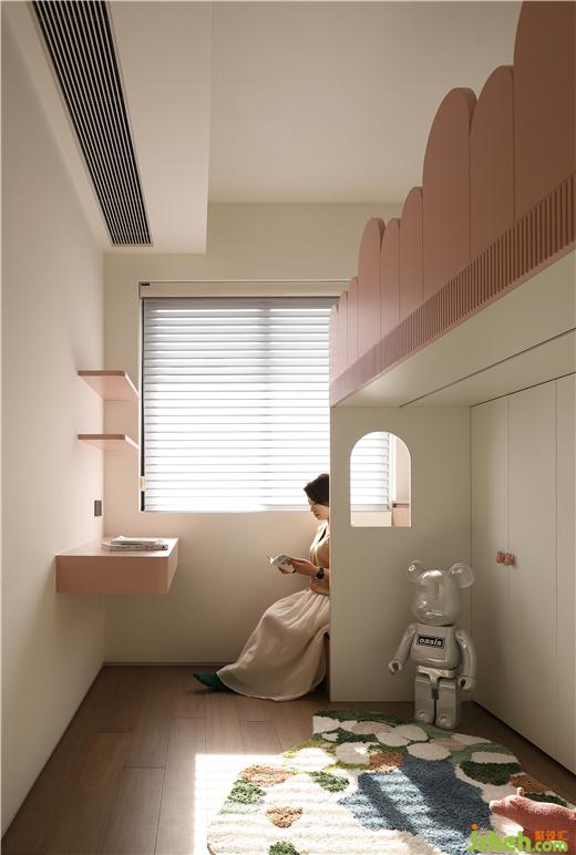 粉嫩及趣味性的高低床,屬于自己的小天地,干凈治愈的高級感,童真的回憶,延伸客餐廳的序列設(shè)計,一切又自然而有變化,也讓視覺上有了一定的延伸感。軟呼呼的兒童房,等你慢慢長大。