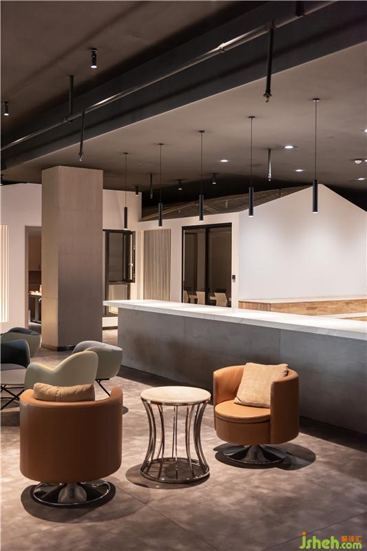 所以,我們摒棄了傳統(tǒng)的辦公設(shè)計(jì)手法,在布局上以內(nèi)建筑,半開(kāi)敞的形式,形成自然村落的感覺(jué),意指“設(shè)計(jì)部落”。