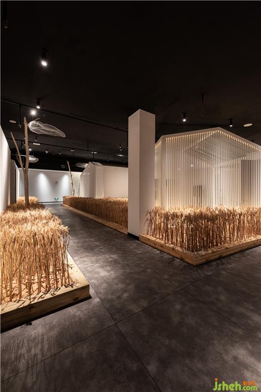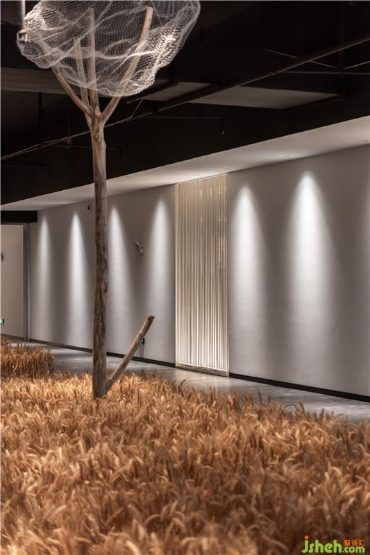 以舞臺化的設(shè)計手法,打造夢幻般的意境,虛擬結(jié)合現(xiàn)實(shí),周邊的墻體和頂面,以黑色作為底色,模糊邊界,拓寬想象的空間。