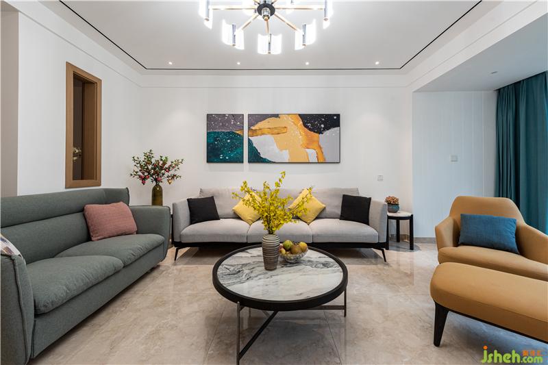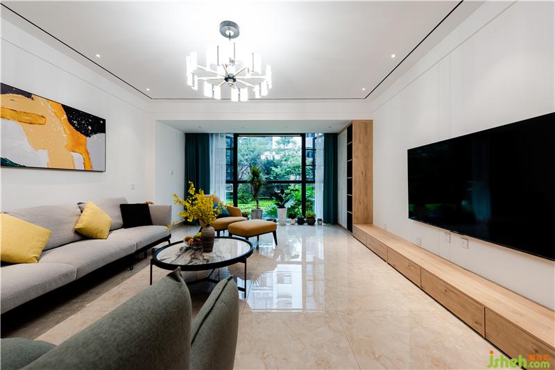 本案位于一樓,外面植被茂密,但由于是一樓,有些空間會(huì)有些暗,業(yè)主理想中“家”的模樣:陽光充足,寬闊自由,每一縷時(shí)光都自有歡喜。于是,“設(shè)計(jì)”的痕跡被抹去,昆明裝修設(shè)計(jì)打通原始陽臺(tái),以大大的落地窗納自然光線入內(nèi),整個(gè)空間輕盈而通透。