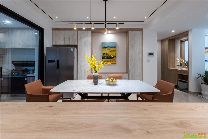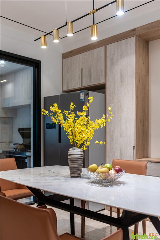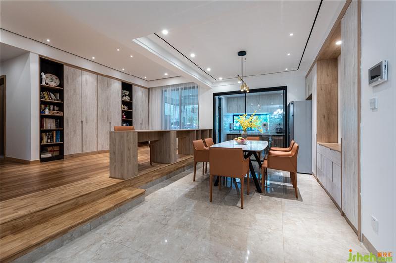餐廳及開放式吧臺書桌的設(shè)計,利于學(xué)習(xí),家庭互動空間,