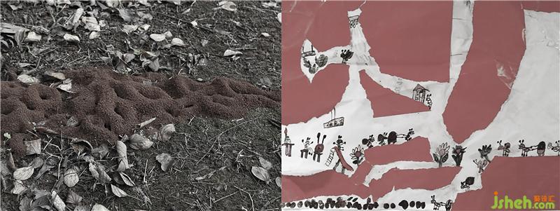 在一幅蟻穴主題的童畫中可以看見兒童對于蟻穴空間功能和交通的想象,通過三維設(shè)計構(gòu)造,使得常人眼中的童趣、設(shè)計師看法里的光影交織空間過渡融合一體,從而讓不同的使用群體都能在其中感受空間組織變化帶來的沖擊。