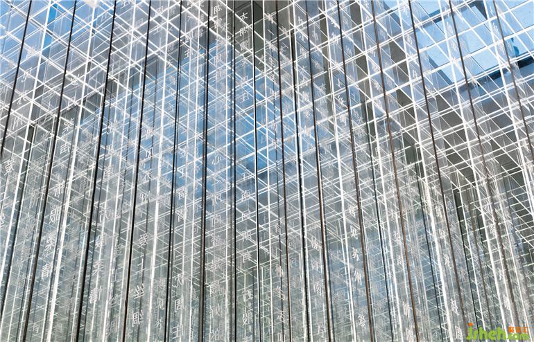 迎合古堡建筑的特色,表現(xiàn)絲綢文化的特點(diǎn)。蘇州展廳設(shè)計(jì)空間中用蠶繭作為材質(zhì),澆之樹脂,形成具有特色的蠶繭磚。踏在蠶繭之上,仰望天空,透過亞克力導(dǎo)光板形成的一束束光線,交織于頂面,是絲綢經(jīng)緯的交叉。