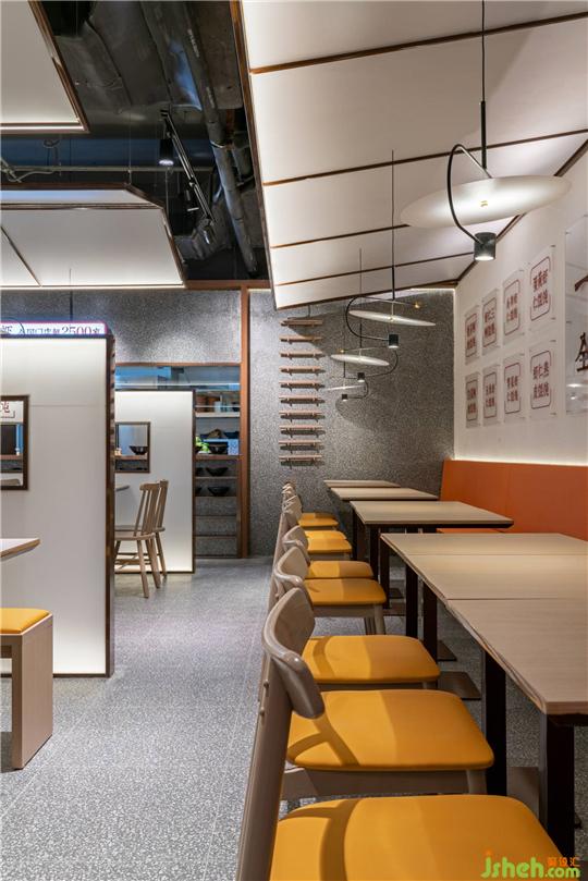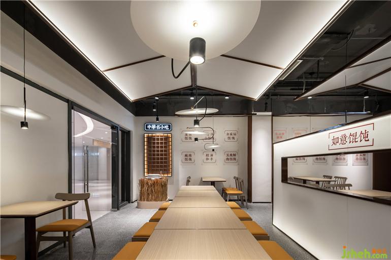 餛飩作為中華傳統(tǒng)美食,早期只是在街邊的草棚下品嘗,為了契合傳統(tǒng)的用餐環(huán)境,迎合大眾對(duì)餐飲空間環(huán)境的要求,蘇州餐飲設(shè)計(jì)在全新的如意餛飩第五代店中,便可在大小錯(cuò)落的屋檐之下覓食。而一行的友人,也可透過(guò)朦朧的隔斷互相照應(yīng)。