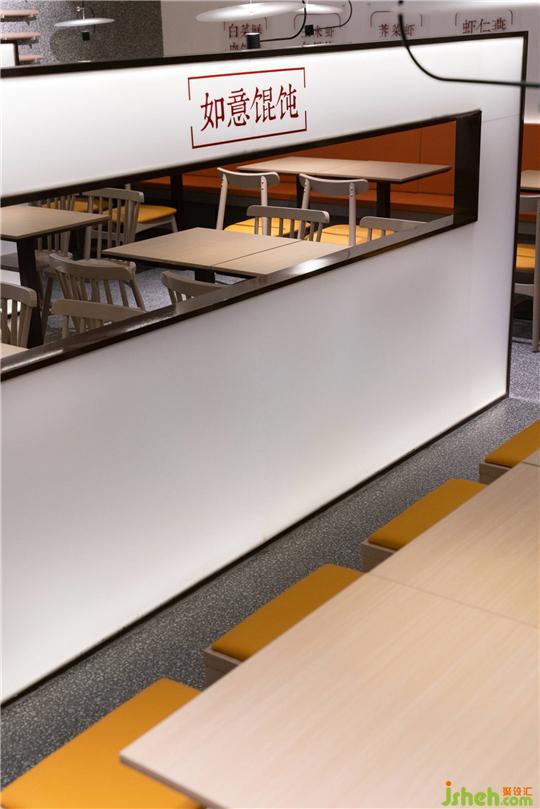 入口處,石磨在麥田里磨著新鮮的麥子,表達(dá)了“如意餛飩”秉持的精選食材原則,“全球優(yōu)質(zhì)高筋小麥”“真空打粉筋道爽滑”是餛飩皮的特點(diǎn)和要求。蘇州餐飲設(shè)計(jì)而墻壁上的柜體便是給準(zhǔn)備包好的餛飩的展示空間,讓客人看得見(jiàn),吃得著。