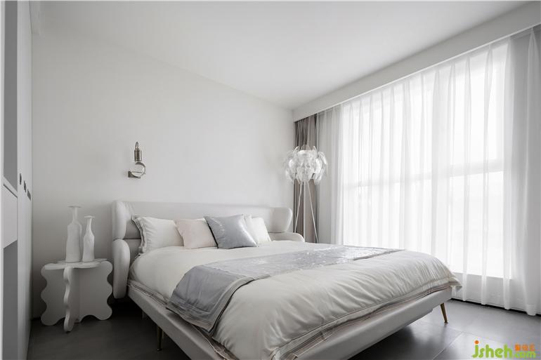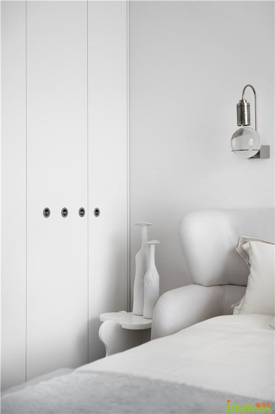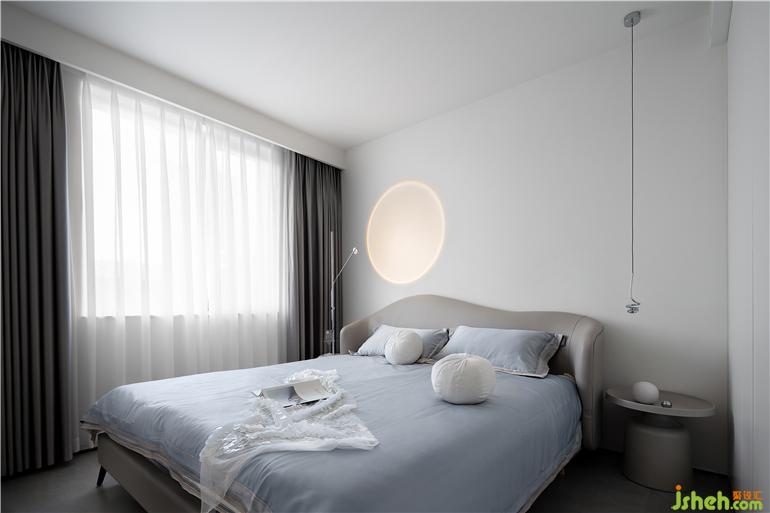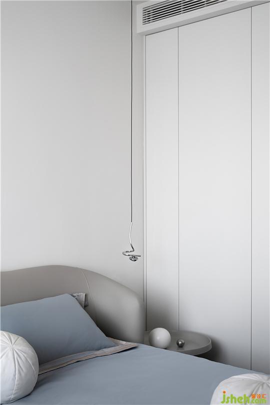 如果說公共空間是對外的展示,那么居住空間則是自我的投射,詮釋出簡約、靜謐、舒適的生活情趣。不同明度的灰白色材質(zhì)相互疊加、映襯,在耐人尋味的細微差別之中,似一幅單色素描。