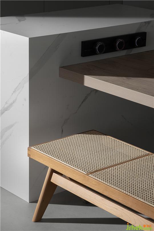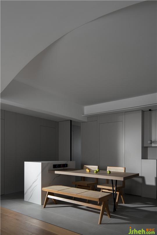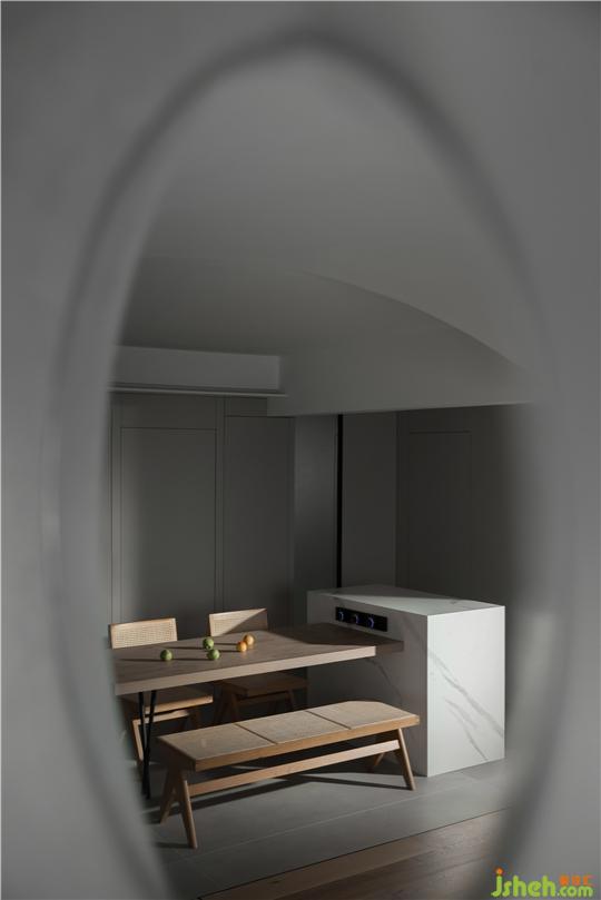 空間原始結(jié)構(gòu)為兩居室空間,客餐廳為長廳,洛陽裝修設(shè)計(jì)在研究承重結(jié)構(gòu)后,對原始結(jié)構(gòu)進(jìn)行了大面積的改造。由于客廳及陽臺景色為洛河光景,我們就拆除了一個臥室與客餐廳打通,來增大采光和景觀面。同時,考慮到業(yè)主一人居住,工作日均在單位就餐,只有周末偶爾做一些簡餐,所以我們將中廚和衛(wèi)生間縮小,增大公共空間面積,保留了一間大臥室;而在客廳區(qū)域,我們摒除常規(guī)會客沙發(fā)擺放形式,以地臺結(jié)合坐墊靠包的靈活方式,滿足不同場景下的生活格局;在靠陽臺的部分,我們空出大量面積,凸顯空間的開闊性,賦予空間無限可能:女主人可以健身、瑜伽、觀影、看書,坐,臥,行,走,均可達(dá)到無拘無束的自由品質(zhì)空間狀態(tài)。