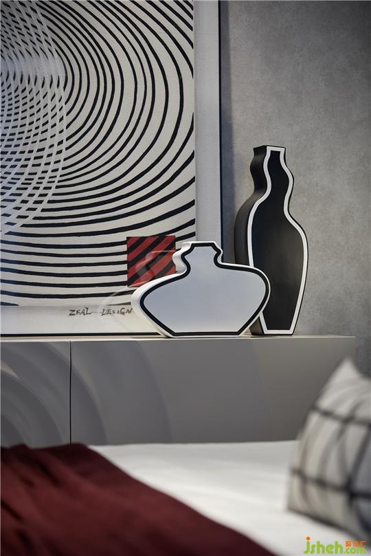空間承載著我們對于生活,對于家,對于心中凈土的期許。本次項目更是如此,多元化的使用階段,代表著空間的共融性,而針對空間主要使用者業(yè)主的特性上,我們大膽突破,從布局到色彩,從選材到藝術(shù),我們力求做到極致。整體作品就像一副藝術(shù)畫作,淡淡的筆觸打底,素色空間干凈整潔,不嬌柔不造作,如清流過膝,不著痕跡;繼而筆墨漸濃,意境漸生,意大利經(jīng)典家具搭配組合,從客餐廳到臥室,基調(diào)完整和諧,輪廓初成;再來就是黑白經(jīng)典配色的原創(chuàng)地毯和原創(chuàng)畫作,將空間藝術(shù)氛圍推向極致;而最后那一點姣紅,如畫龍點睛,暈染荷塘,空間氣質(zhì)躍然紙上。