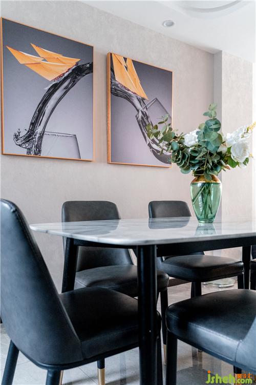 通觀整個(gè)空間的擺件,人像雕塑,墻壁的照片,以及其他擺件裝飾,無(wú)一不體現(xiàn)藝術(shù)和質(zhì)感。對(duì)于家無(wú)論以哪一種形態(tài)呈現(xiàn),設(shè)計(jì)的語(yǔ)言都是對(duì)生活的一種思考和回歸,每一件設(shè)計(jì)作品不只是靜止的,還是一種連接,一種有溫度的連接。家裝設(shè)計(jì)