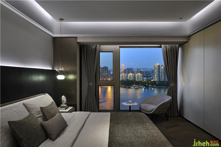 福州豪宅設(shè)計主臥延續(xù)輕奢基調(diào),以木質(zhì)墻板和金屬的碰撞營造空間的藝術(shù)感和精致感,并以不張揚的色調(diào)打造靜謐、舒適的空間氛圍。