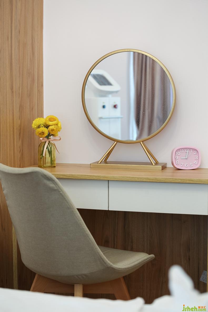 梳妝鏡也是女業(yè)主跟室內(nèi)設(shè)計(jì)師一起挑選確定的,鏡子小巧可愛,色彩也以融入為主,不再選擇跳色。