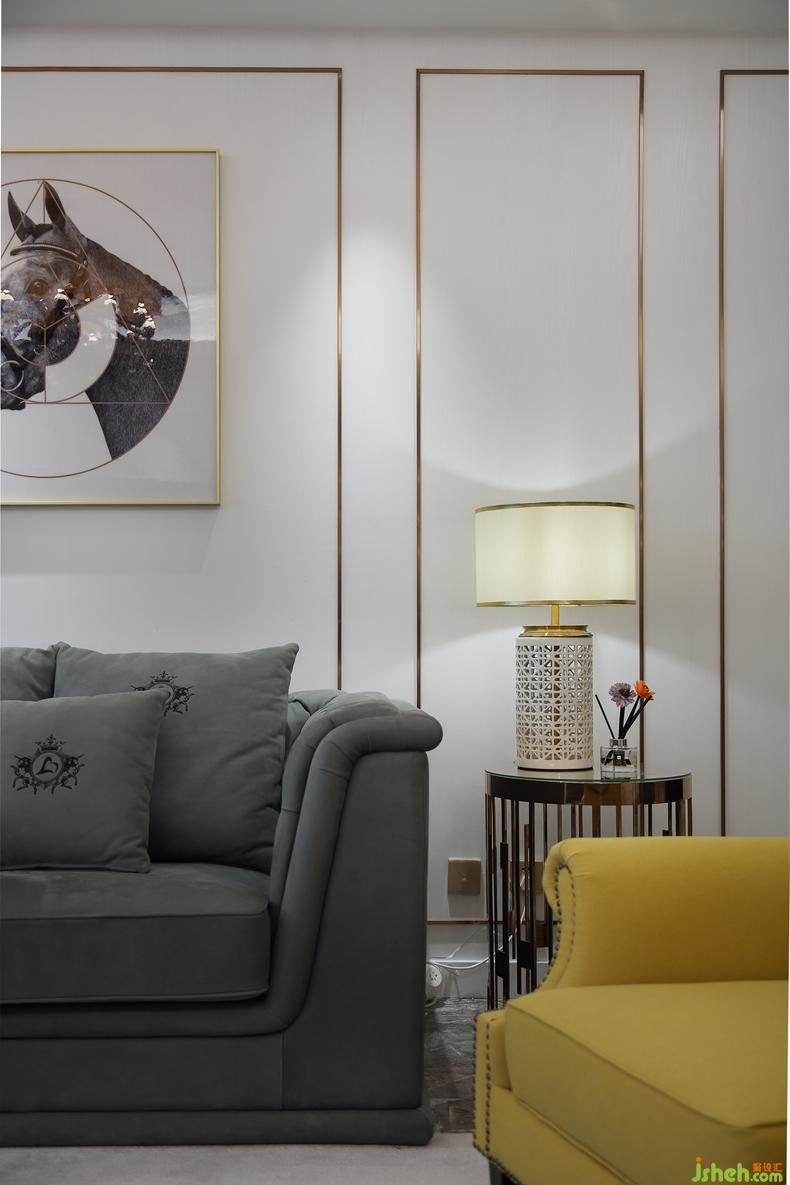 大廳背景實(shí)用不銹鋼點(diǎn)綴,搭配燈具,金屬邊幾,淺黃色掛畫,層層跌級(jí),使得背景簡約而不簡單。室內(nèi)設(shè)計(jì)師