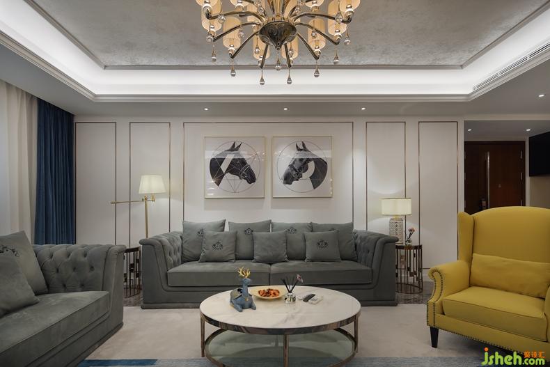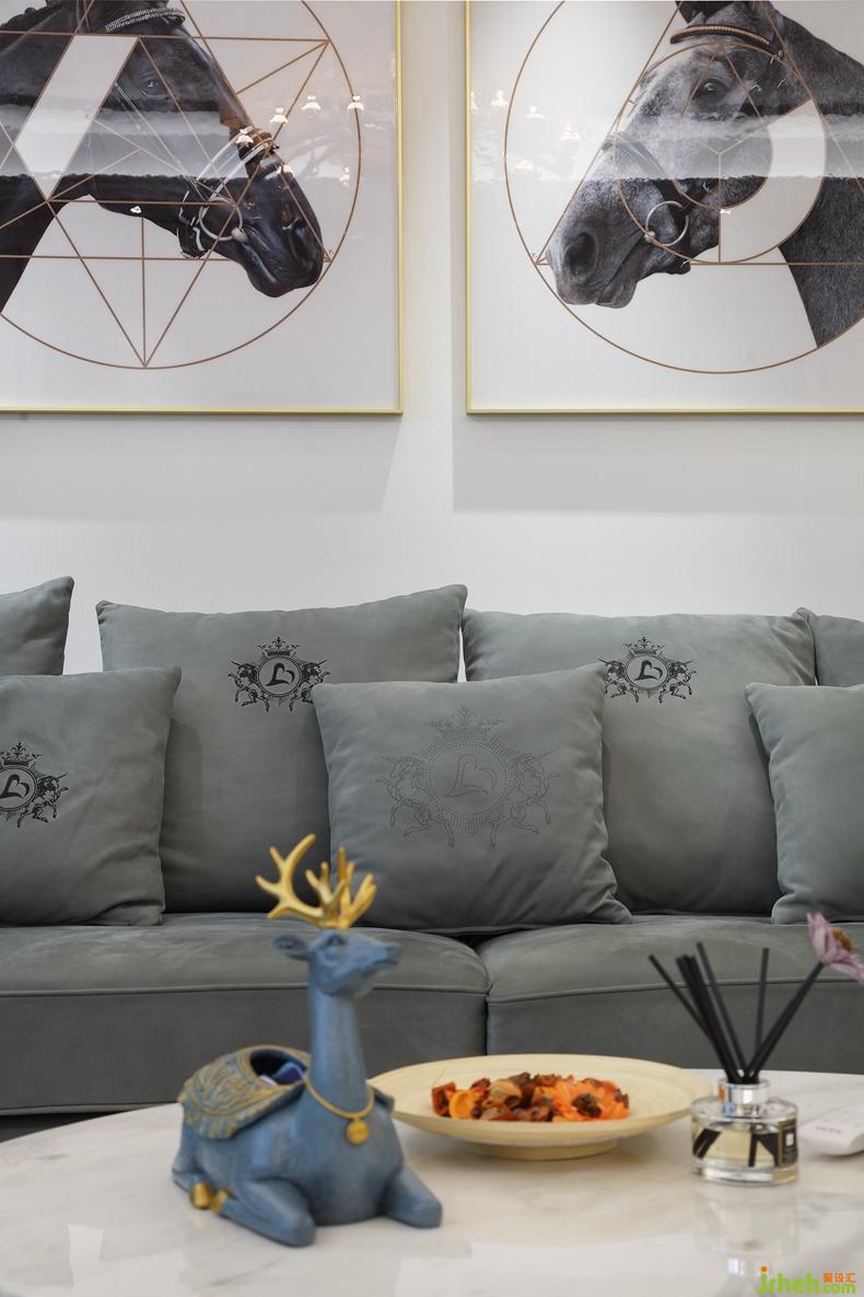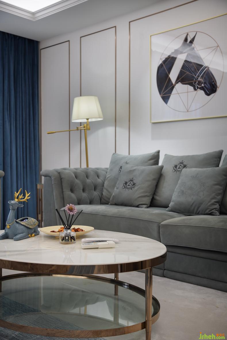 沙發(fā)側(cè)邊點(diǎn)綴一盞落地?zé)粞a(bǔ)光,光線層次級(jí)級(jí)第進(jìn)