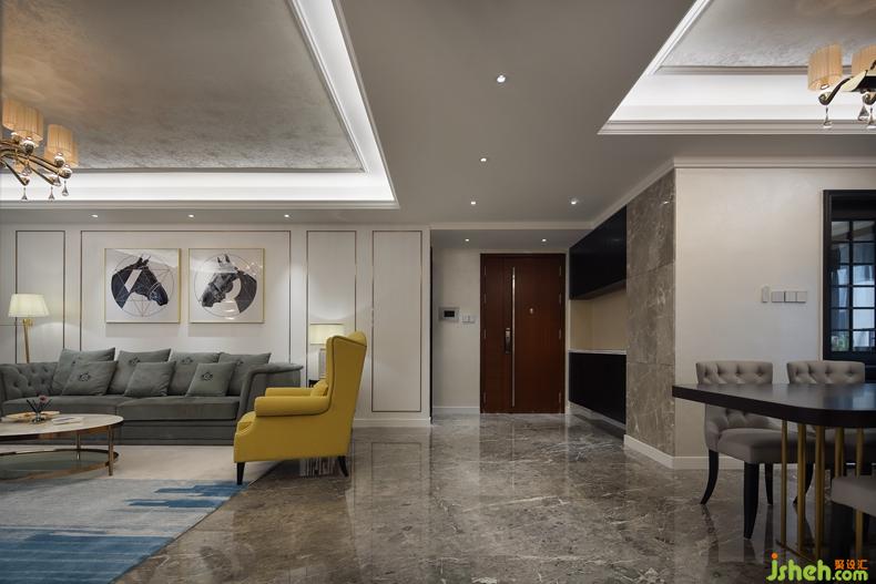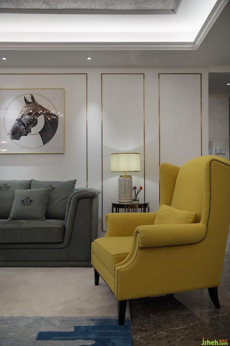 黃色的單椅是本人最愛(ài),跳出沙發(fā)的色塊,對(duì)應(yīng)整個(gè)空間的點(diǎn)綴色,像是海天中的一座島,往上一躺,在島上模仿葛優(yōu),那是不小的享受