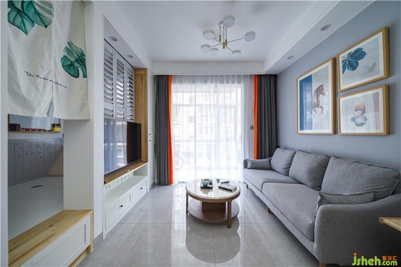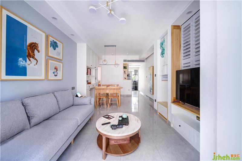 整屋在色彩搭配上以原木色、白色、淺灰色為主調(diào),深淺不一的柔和的藍(lán)色加以點(diǎn)綴,營(yíng)造出一個(gè)輕松、自然的氛圍;材質(zhì)選擇上以原木和布藝為主,打造一個(gè)溫潤(rùn)、舒適、溫馨的家 ;