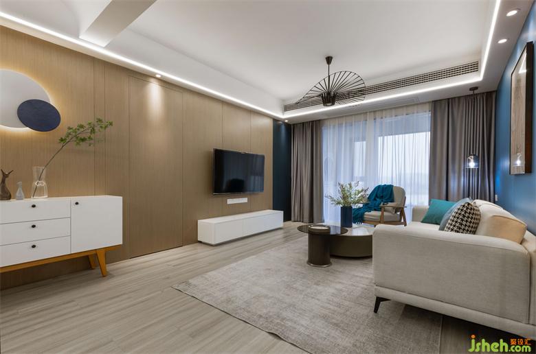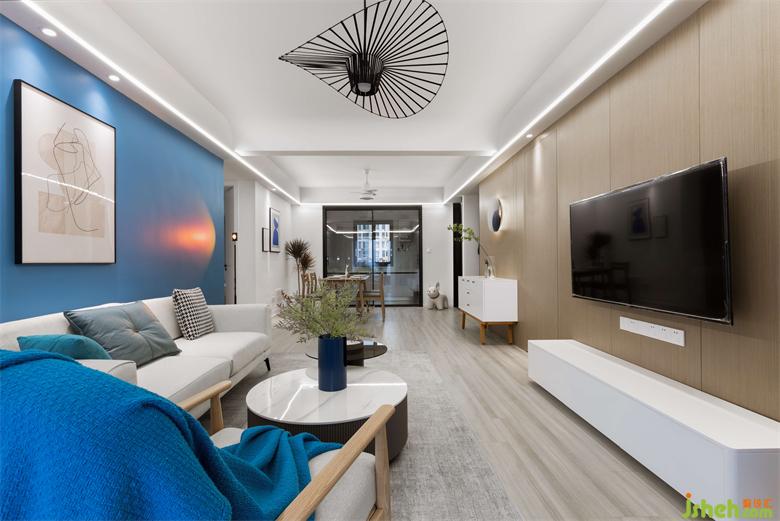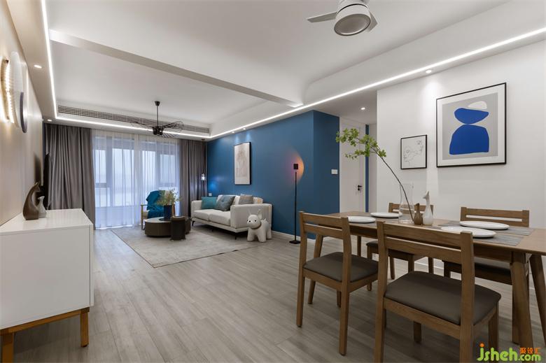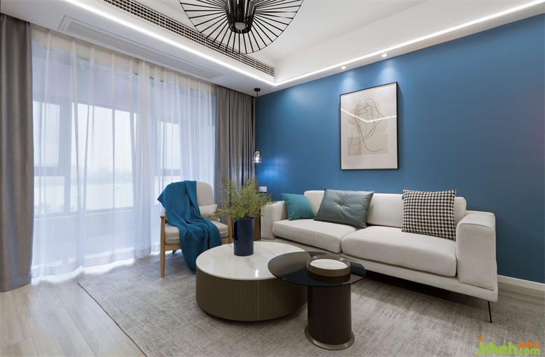 業(yè)主喜歡藍(lán)色元素,裝修設(shè)計(jì)主題基調(diào)以藍(lán)色為主。團(tuán)隊(duì)結(jié)合業(yè)主的想法,打造一個回歸生活本質(zhì)、身體和靈魂能得到真正氣息的生活場所。在此可以遙立于世,暫時遠(yuǎn)離喧囂,來一場心靈的放空之旅。裝修設(shè)計(jì)