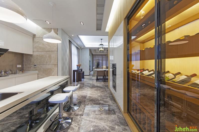 主要材質(zhì):灰網(wǎng)紋大理石,黑鏡鋼,水曲柳