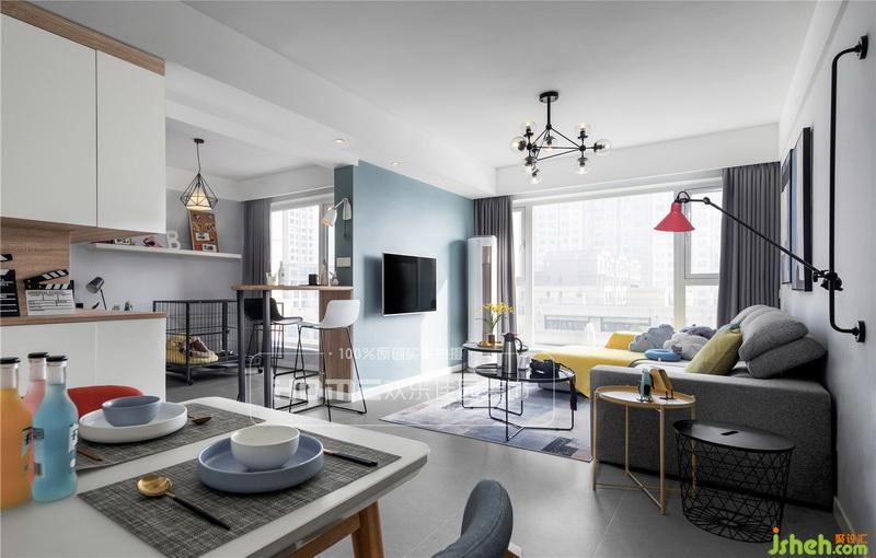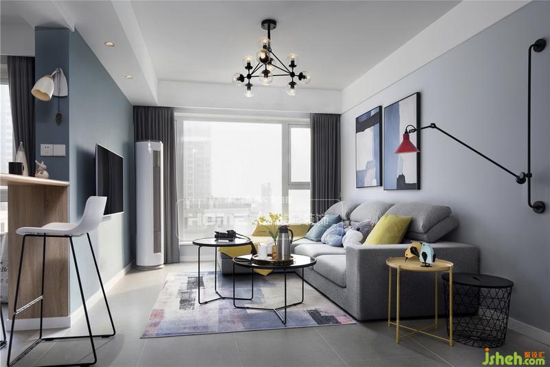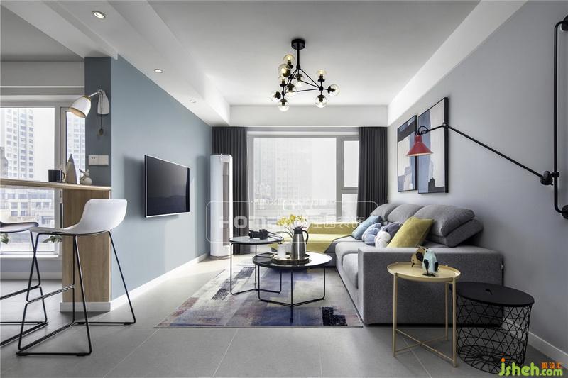?墻上的loft工業(yè)風(fēng)壁燈是男主人喜好的展現(xiàn),而灰藍(lán)色和淺灰色的碰撞也是女主人的心頭愛,室內(nèi)設(shè)計(jì)師把兩人之間的故事一點(diǎn)一滴的匯聚,才讓這個(gè)家充滿著獨(dú)特的氣息。