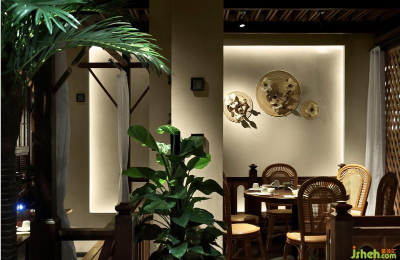 綠色植物點(diǎn)綴其中,原木質(zhì)感的村落營造東南亞風(fēng)情本餐廳,開敞式設(shè)計(jì),獨(dú)特的東南亞小木屋配合綠植色彩營造獨(dú)特的異域風(fēng)情,非常不錯的餐廳設(shè)計(jì)!