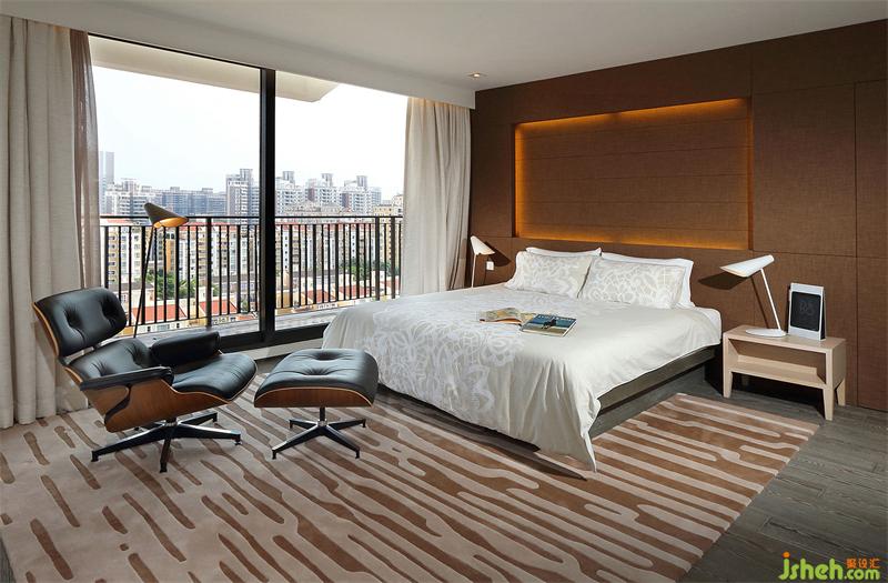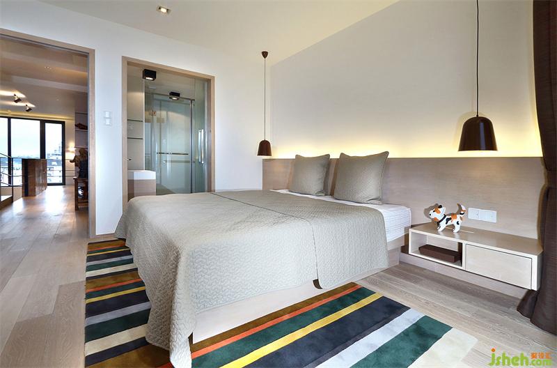 主人房以布藝墻、條紋地氈打造沉穩(wěn)內(nèi)斂的舒適感覺。