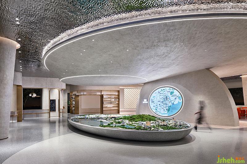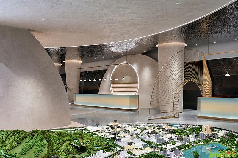 基于青島城市山海一體的地域特征與浪漫氣質,設計在1F以流動的水為靈感,打造多元與充滿韻律的城市展廳。