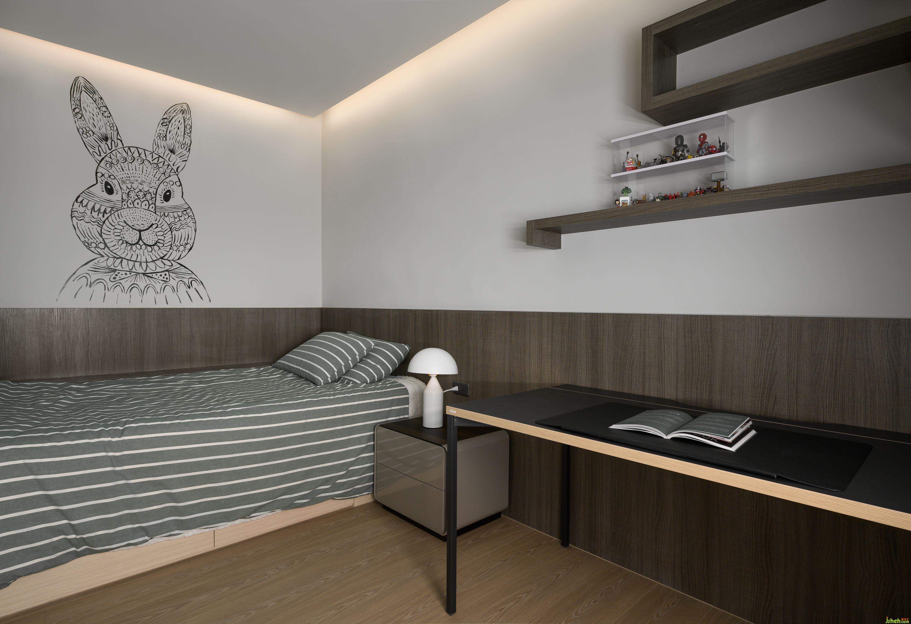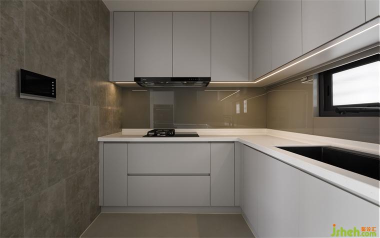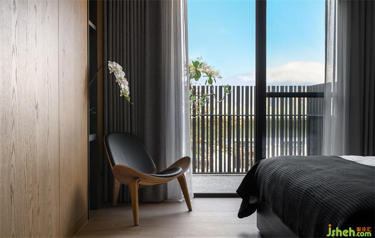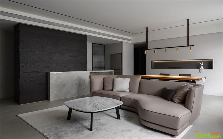 一樓為公共空間,提供家人和朋友娛樂、餐飲和交流功能。別墅設(shè)計(jì)開放式的設(shè)計(jì)增加了空間的氛圍和寬敞感。深色木皮墻和米色石材吧臺(tái)形成一道主題,回字型的動(dòng)線使空間更通透,并帶有一些儀式感。浴廁分離的設(shè)計(jì)滿足主人和客人的需求,色調(diào)上融合自然和諧的氛圍,與窗外風(fēng)景融為一體,讓人能以優(yōu)雅的姿態(tài)與自然共處。