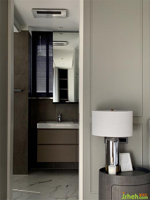 在公共空間上,我們賦予空間的氣質(zhì)是簡(jiǎn)約自然,豪宅設(shè)計(jì)運(yùn)用大面積的灰白色系為主調(diào),溫和的木色為空間底妝,結(jié)合木皮的自然紋理讓四周兼顧美觀舒適的同時(shí),植入安靜純粹的精神觀感,刻意隱藏的公共浴室讓墻面的材質(zhì)延伸至廚房,完成空間的統(tǒng)一性及延續(xù)性。
