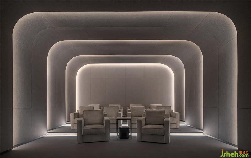 會所過道同樣遵循這一原則,透空處理一方面引入光線進入過道,另一方面削弱過道的感覺。會所設(shè)計