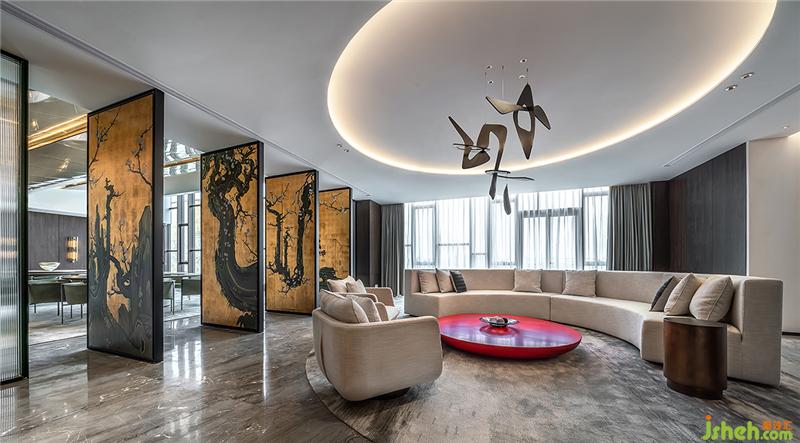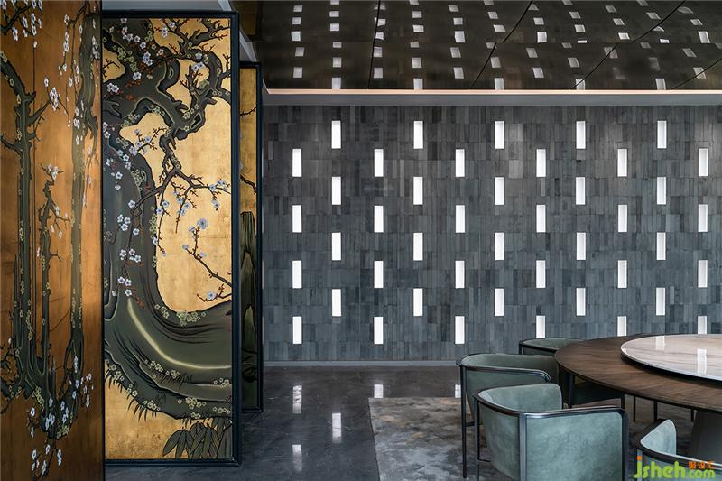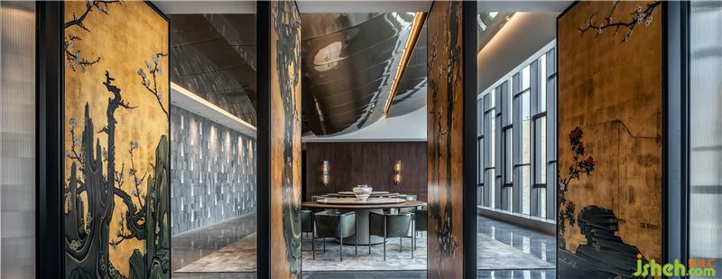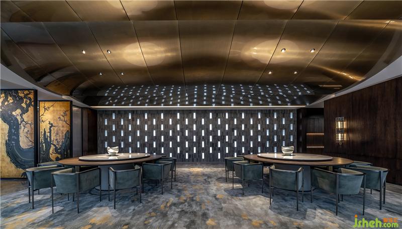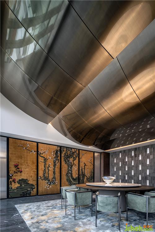 探索一開始就希望這個(gè)空間是個(gè)場景化的空間,有兼具東方元素的雍容華貴感,又能將未來感相融合,就像電影里的場景一般,最后達(dá)成了期望中的效果。會(huì)所設(shè)計(jì)