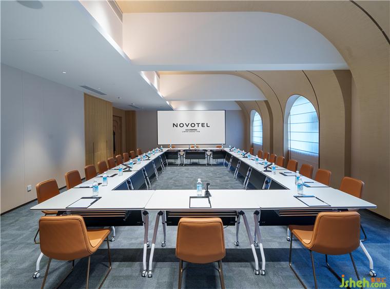 諾富特酒店設計空間內(nèi)離不開光的指引Guide of light,猶如我們指引客人們來到景觀最好的C棟露臺打卡拍照,我們希望給到一個空中棧道的概念,旅行者聯(lián)想到去考古冰洞群的體驗,同時又把露臺和分散的局部室內(nèi)空間組合成一個不一樣的行政酒廊。