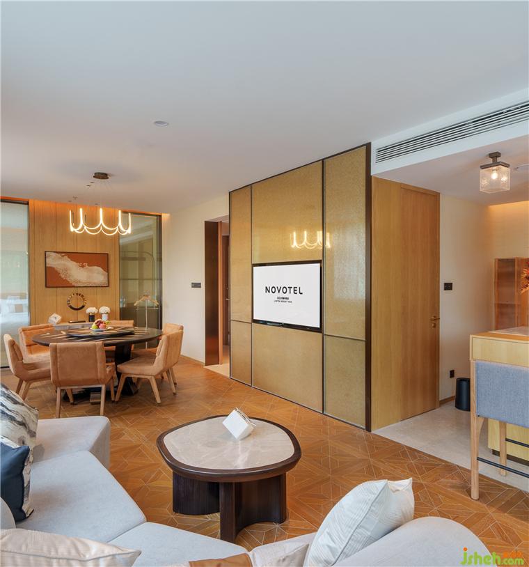 亮點1:下榻酒店接待大堂我們營造一種空間儀式感立刻感受到親切,我們的前臺和休息區(qū)融為一體,為新一代旅行者打造一種全新的入住體驗。位于B棟一層的大堂吧和全日制餐飲吧臺融合一體,餐飲吧臺是社交的中心。這里可提供給旅行者全天候服務,溫馨、充滿活力的空間,力求打造隨時隨地自由享用餐飲空間,利用空間中的柱廊設計可開可合的移動隔斷,作為分隔各個區(qū)域的重要介質(zhì),運用到空間各個過渡點,這樣就形成了靈活、多功能的全天開放功能區(qū)。