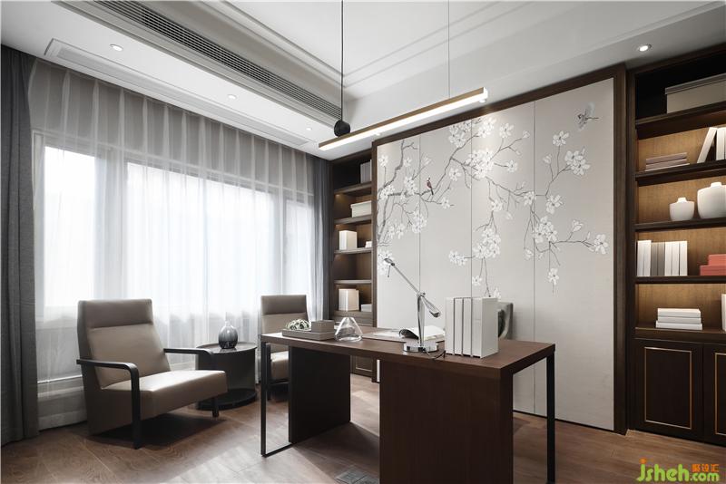 咖影木飾面,烤漆,真絲柜門反復(fù)細(xì)細(xì)做推敲。打破門體材質(zhì)的單一性,讓缺點(diǎn)轉(zhuǎn)變?yōu)榭臻g的亮點(diǎn)。定制花鳥(niǎo)圖案,營(yíng)造東方古意與詩(shī)韻,讓人棲居在一片世外桃源。新中式別墅裝修