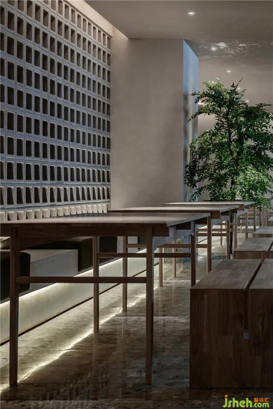 餐廳與茶室隔斷區(qū)域的鏤空空心磚陣列開(kāi)來(lái),通過(guò)每個(gè)孔洞的穿透將茶室區(qū)域的水墨山水栩栩如生的寫照在餐廳的每個(gè)空間縫隙中,即強(qiáng)調(diào)了細(xì)節(jié)的品質(zhì),也體現(xiàn)了Three Yard的文化特征,帶給人大氣磅礴的觀感又不失思緒的延展福州養(yǎng)生館設(shè)計(jì)。