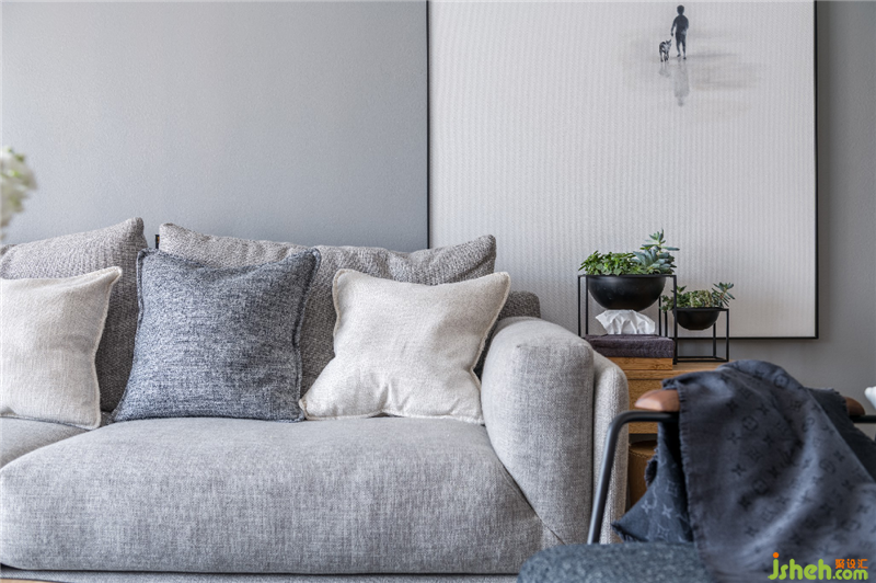 這個是一個精裝房,空間格局沒有改動,只是做了軟裝,偏冷的灰調和原木色的空間,會讓業(yè)主覺得很放松和舒適,所以在討論之后,我們決定做一個冷色和木色結合的簡約北歐風格。在飾品的選配上,也是精致又實用。室內設計師