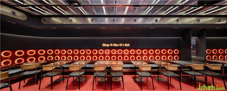 紅色從門頭蔓延至室內(nèi)墻面和地面,成為空間的主基調(diào)。杭州餐廳設(shè)計在沉穩(wěn)質(zhì)感的黑色映襯下,自內(nèi)而外散發(fā)出潮流、動感的活力。一場感官激蕩下的嗦粉社交即將啟程。
