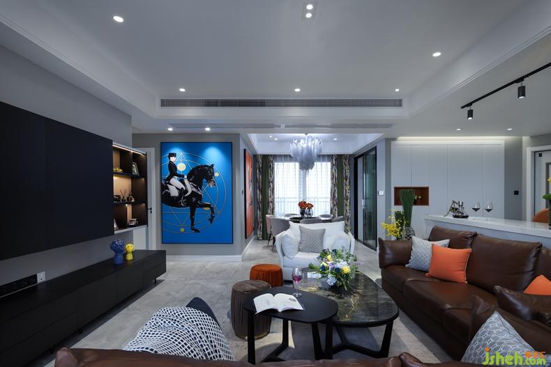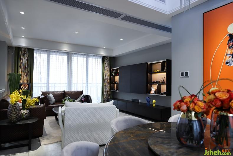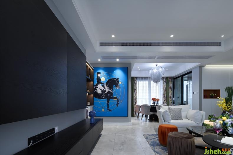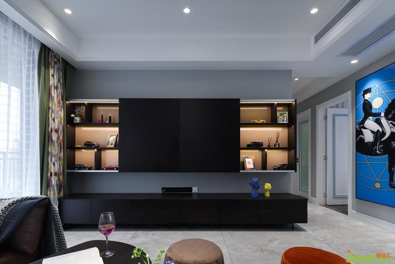 客廳硬裝簡(jiǎn)單;室內(nèi)設(shè)計(jì)師天花做無(wú)主燈設(shè)計(jì)。分布在空間各角落的小光源,共同渲染出一個(gè)柔和、明亮的空間。黑白灰為主色調(diào)的空間,搭配多彩的飾品,提高空間顏值。