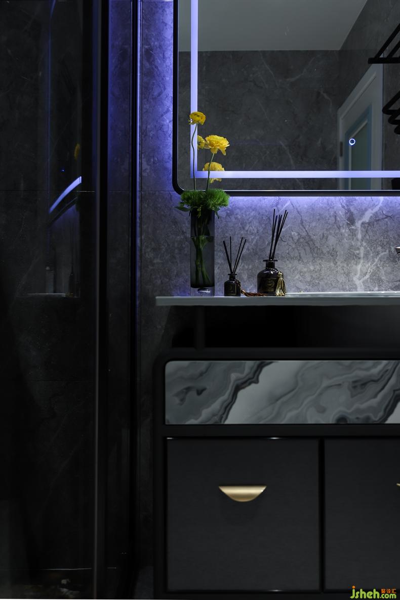 灰色瓷磚自然淡雅,提供放松或冥想的空間維度。室內(nèi)設(shè)計(jì)師洗手臺臺面采用水墨畫元素,散逸出與人不爭氣韻。
