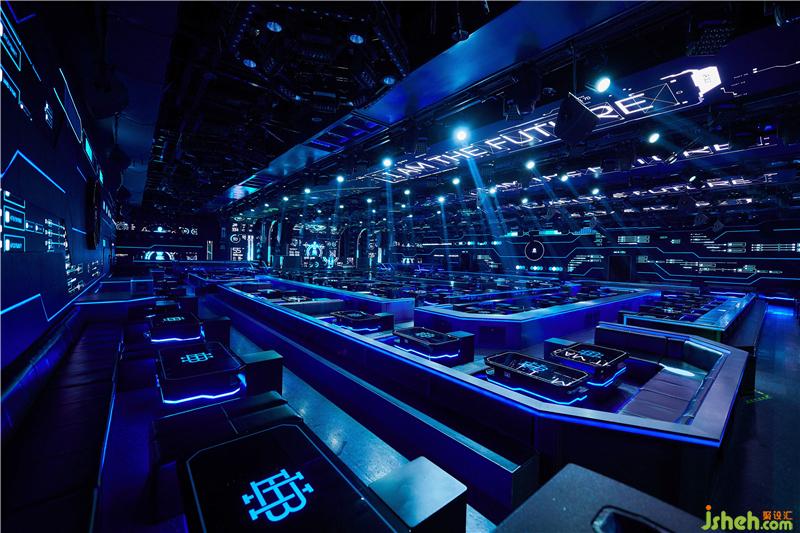 Through the front hall, is the largest proportion of the entire project - the party area. 900 ㎡ large space, the space of humanized design concept combines the technique of barrier-free, space is connected fully, eye shot is open, facilitate interaction. The rounded Angle sets off the illusion of time travel. Leading Raver to the shores of the holy land of music. Huge futuristic science and technology party space, humanized design concept reflects barrier-free technology. No matter where you stand, you can easily see through the whole room.