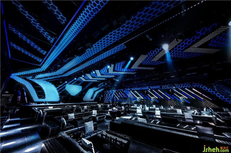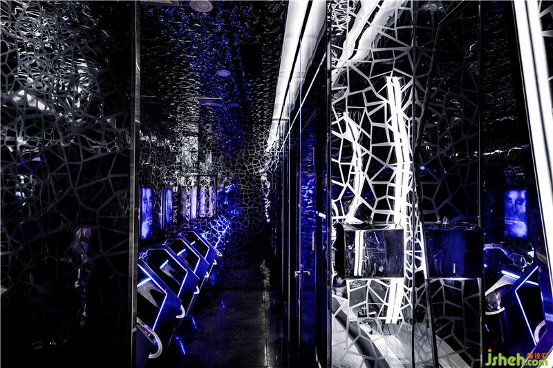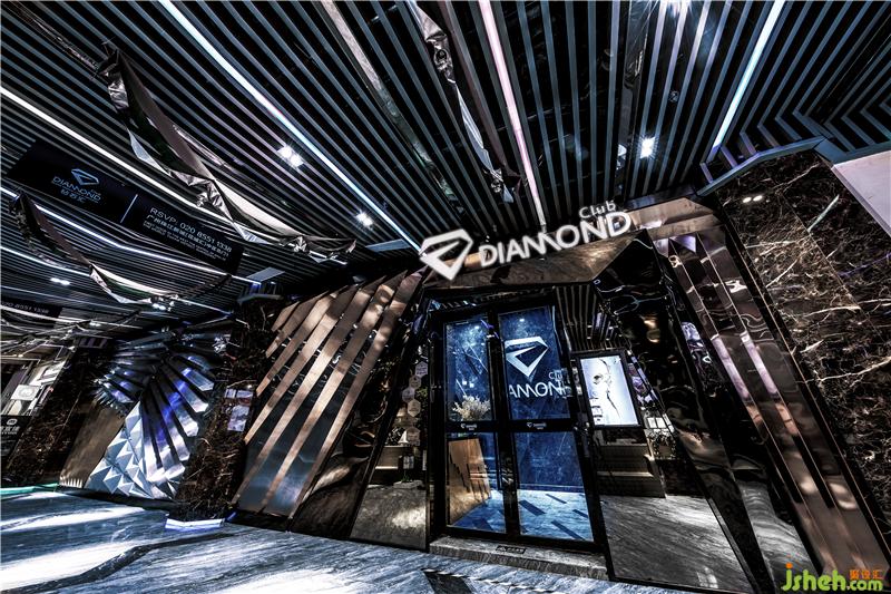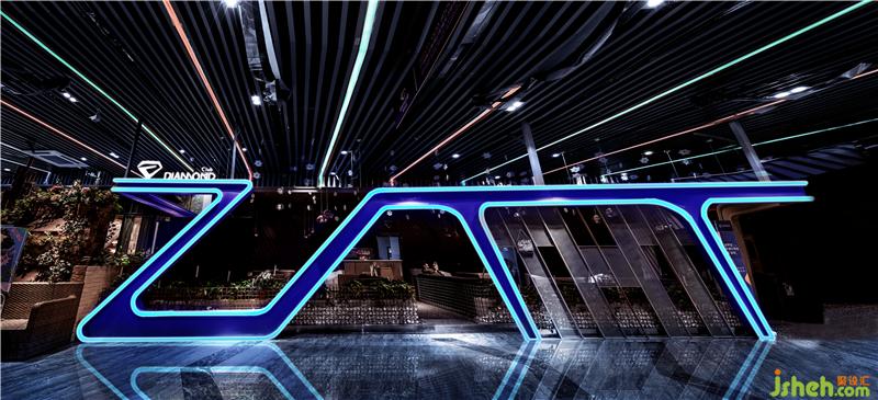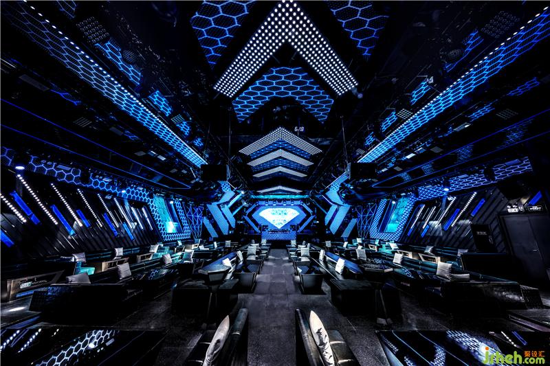 本案的最大特點是用大量的冷光和線條把鉆石稀缺、高貴的形象和大眾娛樂聯(lián)系到一起,營造整體自由跨界的氛圍。以鉆石為主形象,鉆石“光芒“為線條,把DIAMOND 的墻壁和天花連成一體,裝修公司多面形墻壁的邊緣用昂貴材質(zhì)包裹,讓人們能感受到置身在“鉆石”的奢華當(dāng)中。